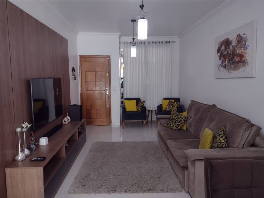 Excelente Sobrado!!! Localizacao Privilegiada!!!Imovel muito conservado! Comodos muito arejados com otima luminosidade natural!Sala, 2 dormitorios, sendo 1 com sacada, cozinha com armarios de boa qualidade, area de servico com otima ventilacao, 1 W.C social, 2 vagas de garagem. Vale a pena conhecer! Agende ja a sua visita! Aceita permuta no litoral!!!
