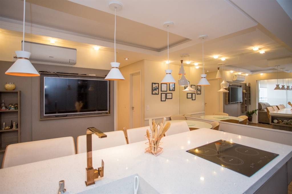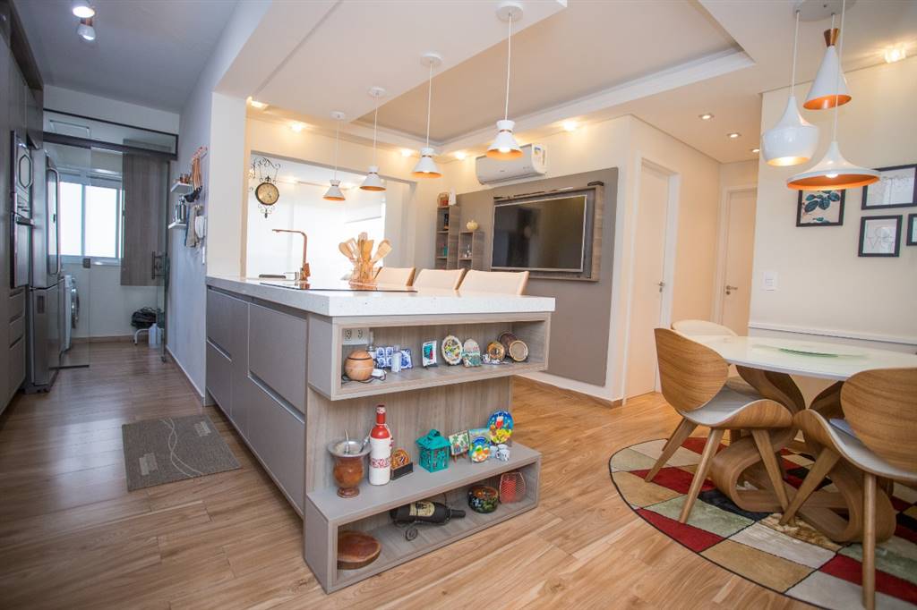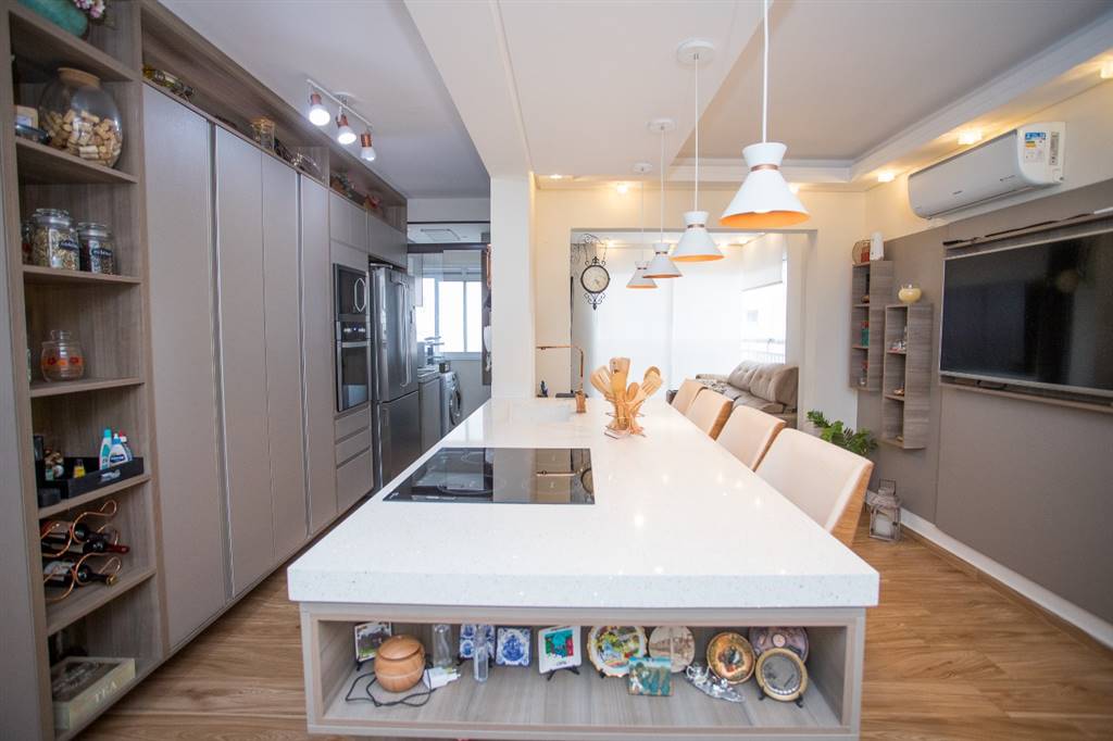 Sala ampla com iluminação maravilhosa, bela sacada com vista livre, dois dormitórios amplos e arejados, planejados com muito bom gosto, sendo 1 suíte, cozinha americana com bela ilha, totalmente planejada, área de serviço planejada e muito ventilada, 1 w.c. social. Imóvel rico em lustres, pisos de primeira linha. 2 vagas de garagem. Agende já a sua visita!!!
