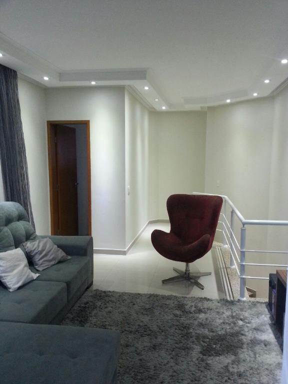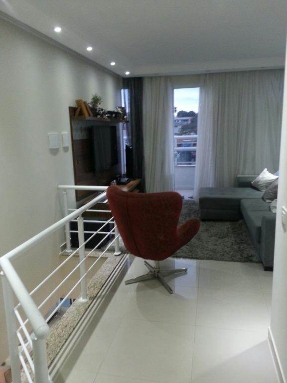 Excelente Cobertura! Local muito tranquilo!!Parte Inferior: Sala ampla 2 ambientes com sanca e iluminacao especial, piso em madeira, sacada com vista livre. 3 dormitorios planejados com piso em madeira, sendo 1 suite. Cozinha americana planejada, com cooktop e forno eletrico, toda modernizada com azulejos coloridos, piso em porcelanato. Area de servico com piso em porcelanato. 1 W.C. social planejado, escada interna para piso superior em granito. O elevador atende os dois pisos.Parte Superior: Sala ampla 2 ambientes piso em porcelanato, belissima sanca e belissima iluminacao , 1 W.C planejado. Area Gourmet toda envidracada, possui uma churrasqueira e excelente area livre.3 vagas de garagem cobertas.Portao automatico e interfone, excelente localizacao, rua tranquila. Venha conhecer essa preciosidade!!! Estuda permuta de ate 50%. Imovel locado!!!